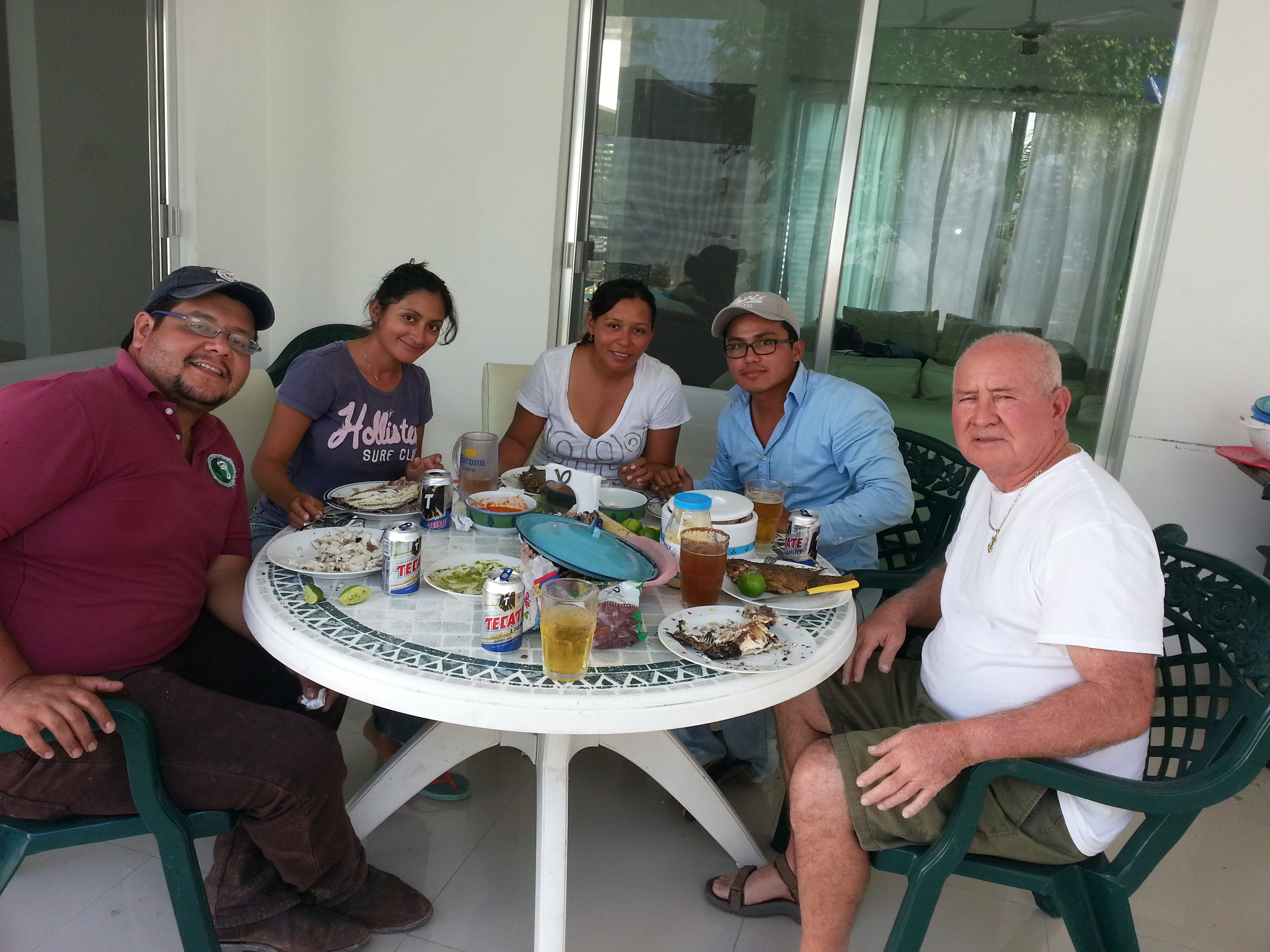 English & Spanish (scroll down for Spanish Version) Ingles y Espanol ( Version en espanol debajo del de ingles) Every day we learn something new, while in Merida, Mexico for two weeks on a family visit, we participated in a Tilapia backyard party, While some of the tilapia was fried, some were completely salted on the outside then placed directly on the grill. Being the first time I observed such a practice, I was hesitant to try it due to the extreme amount of salt on the outer skin. I was however advised that the salt was to prevent the fish from overcooking and to facilitate the removal of the skin so that without difficulty the flesh is exposed directly for consumption. After the first demonstration I tried it, and the fish skin did come off, and the flesh was not salty, in fact delicious. I also learnt that the barbecue coal can be lit by using some of the fuel from the cans used to keep food in chafers warm in a buffet. While I have tried lighter fluid, newspapers, and other methods, for the first time I have seen this and it works faster than the normal methods used. The tilapia farm is owned by the Kin Yuc AgroAquapecuario del Sur S.A. organization; the working group is made up of, Berenice and Vivian Suarez assisted by Juan Basto who together are young professionals/entrepreneurs who have launched their business on their own and who are in the early stages of development with their first harvest in two months. (I’m sorry I forgot to mention the Tecates – it wasn’t used for cooking)