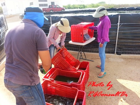 Photos attached feeding the fingerlings, harvesting the tilapia, sorting and weighing the tilapia, and the tank farm in various stages of operation, such as removing waste water and replacing with fresh, tanks completely empty for cleaning and repair. The waste water is used for irrigation of crops and waste material for composting.